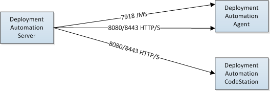 The actual ports used depend on the specific implementation, and if Deployment Automation is used natively with an SBM solution such as Release Manager, the ports used to access Deployment Automation would be the same ports as those used for the SBM solution.